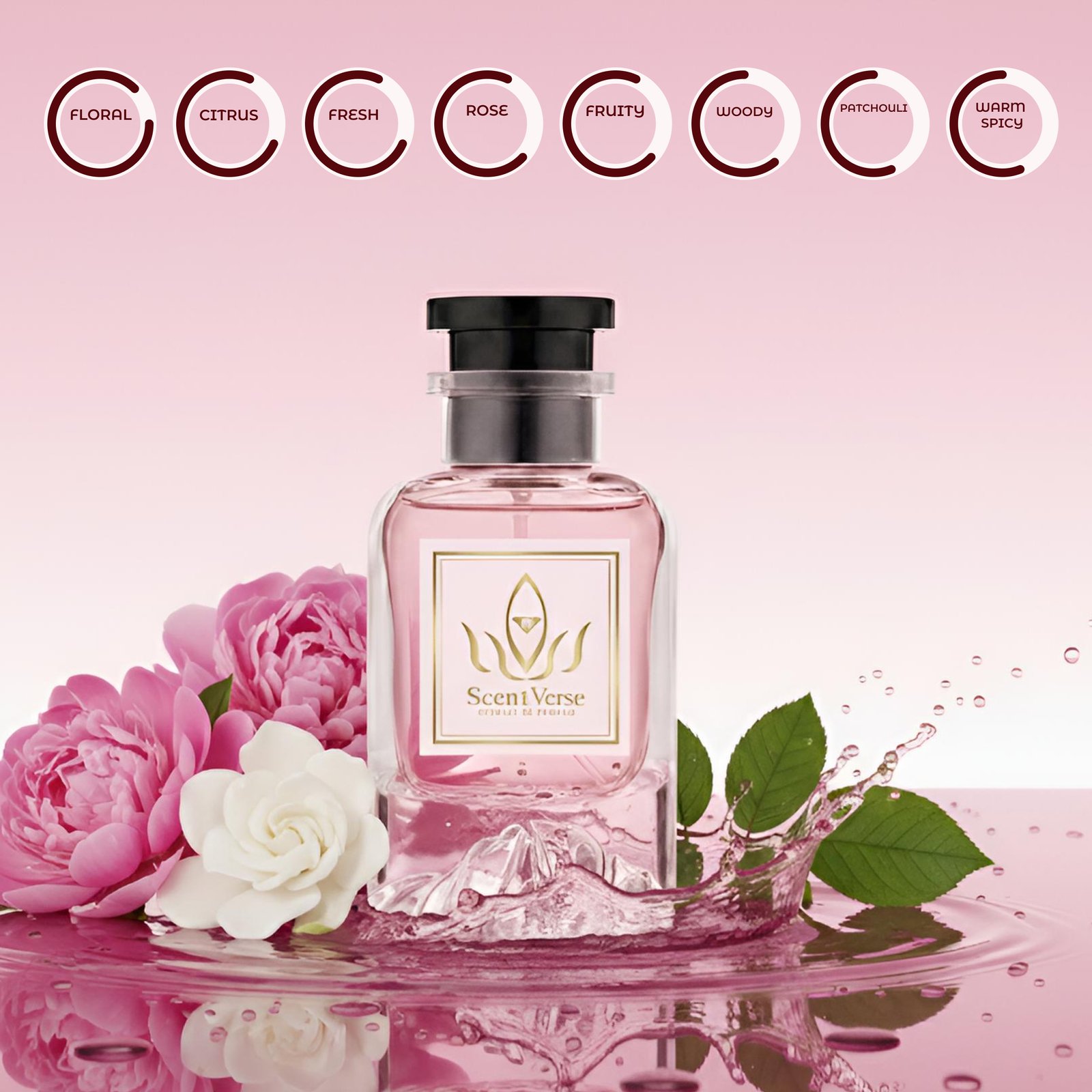 Explore Klone perfumes Canada, dupe and inspired fragrances, imitation perfumes, and perfume bar experiences Ontario. This fragrance is a delightful blend of sweet florals and juicy fruits. It opens with a bright, cheerful energy and dries down into a warm, sugary finish that feels both feminine and sophisticated.