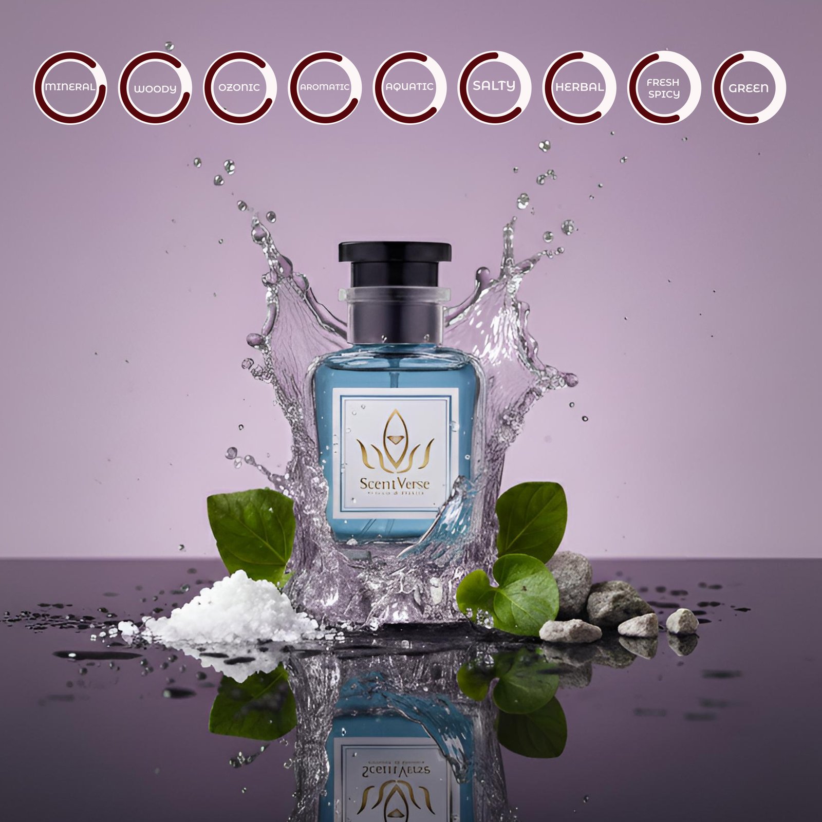 A unique and crisp opening of Mineral notes and Salt, brightened by the soft, green touch of Violet Leaf.